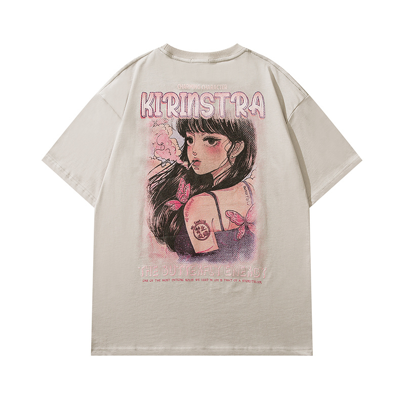 Бежевая повседневная футболка KIRIN STRANGE с большим принтом
