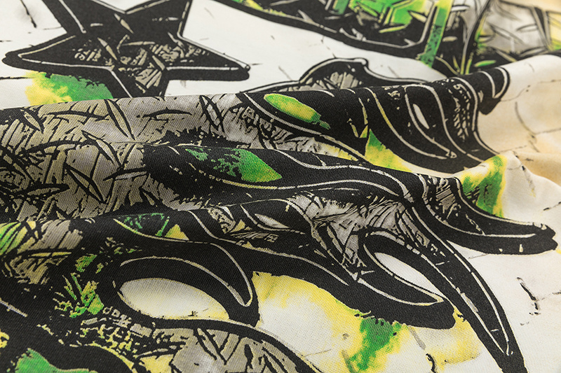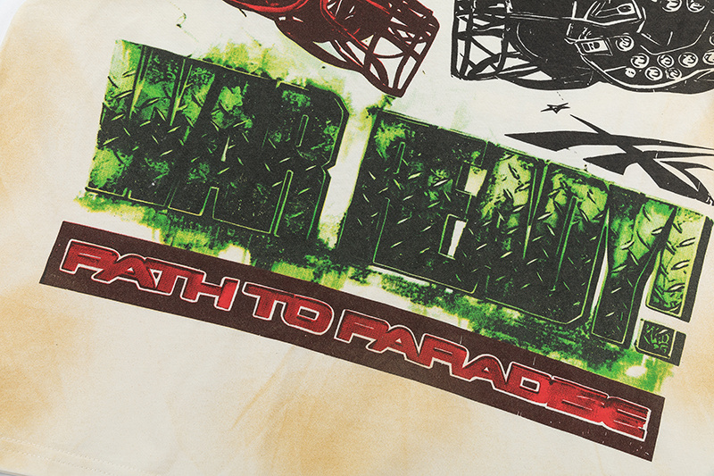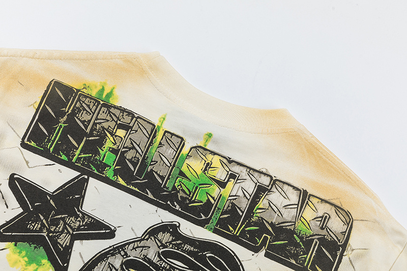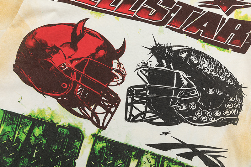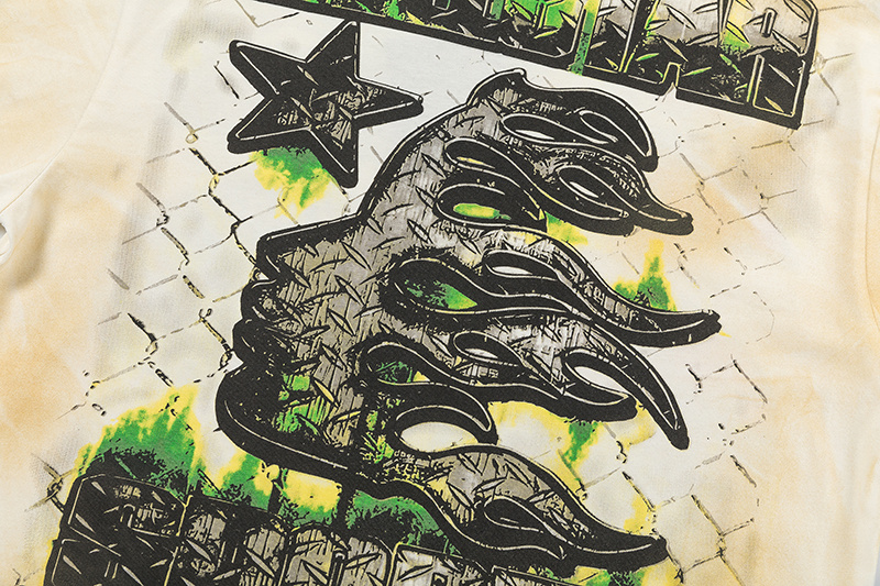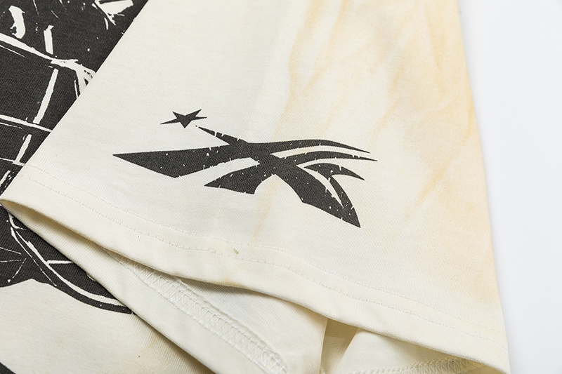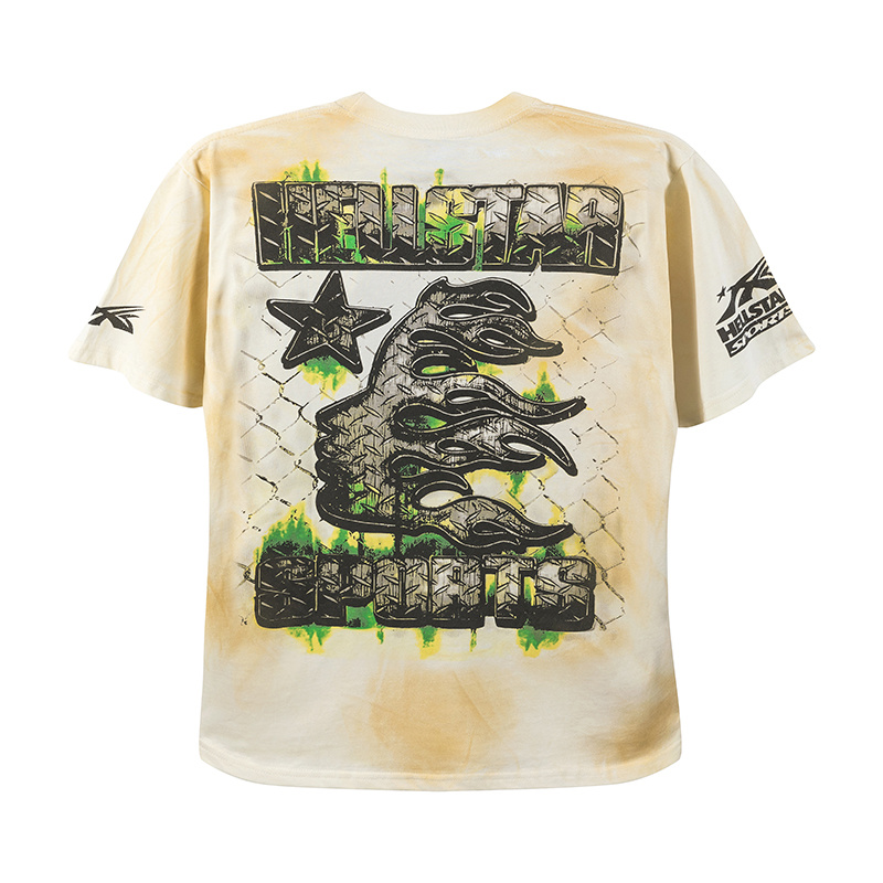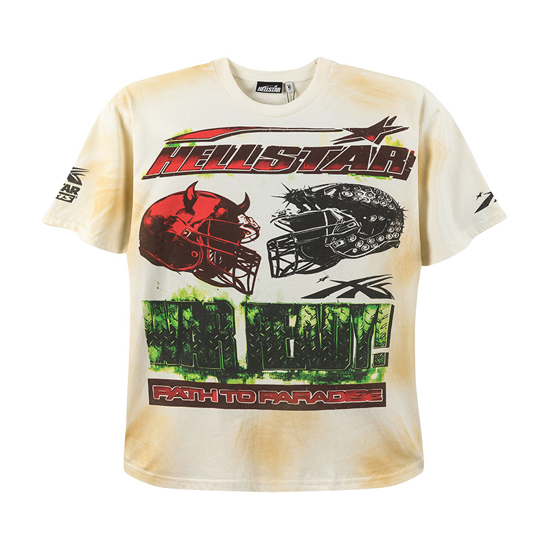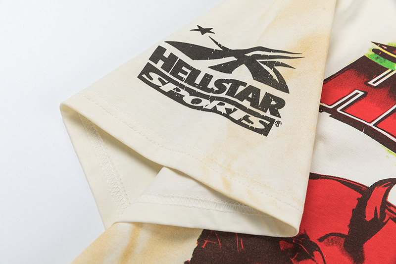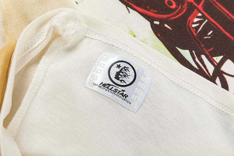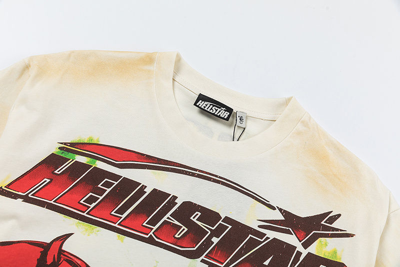 Бежевая с множеством принтом оверсайз футболка Hellstar