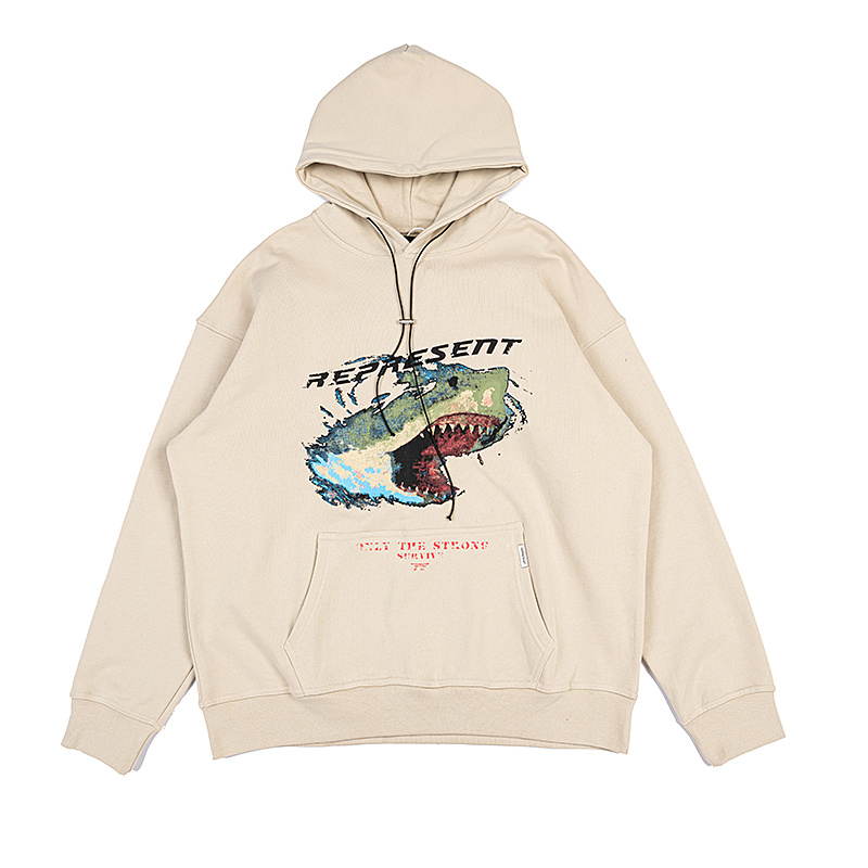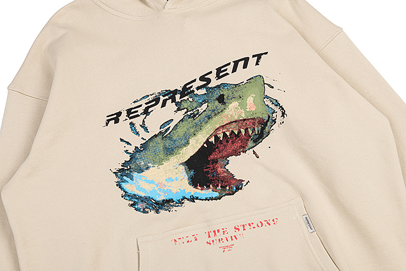 Бежевое худи Represent с большим рисунком акулы и логотипом