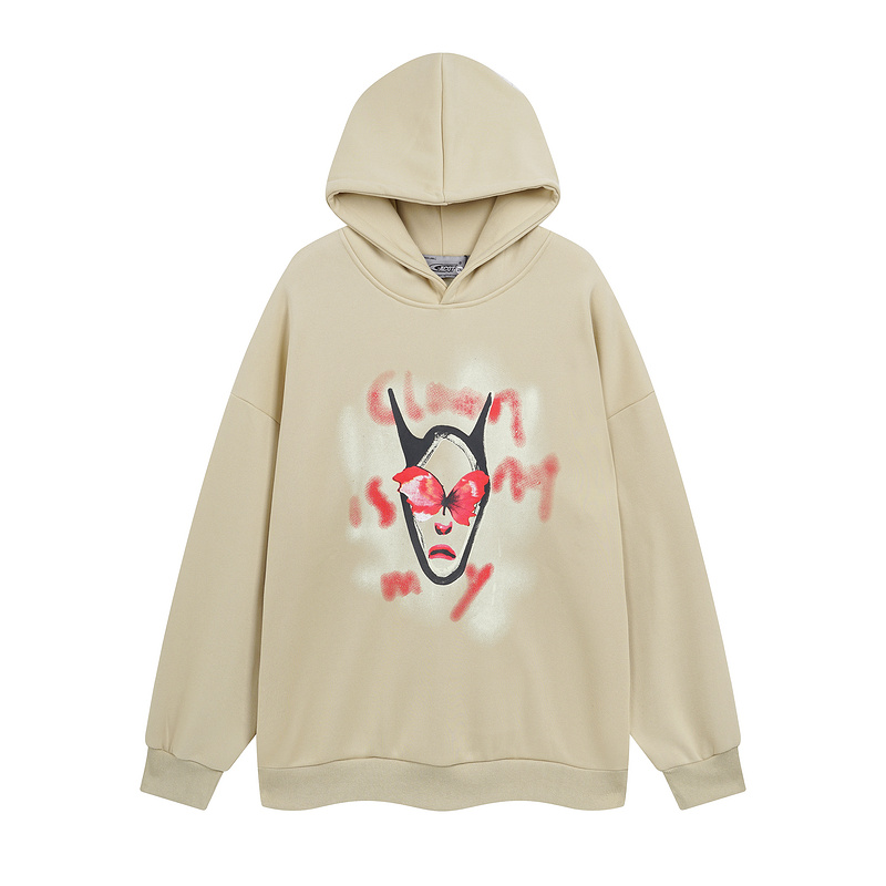 Бежевого цвета ACQT худи с принтом "Лицо" и нечеткими надписями