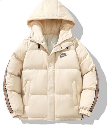 Бежевый с капюшоном и сетчатыми полосками на рукавах пуховик Nike