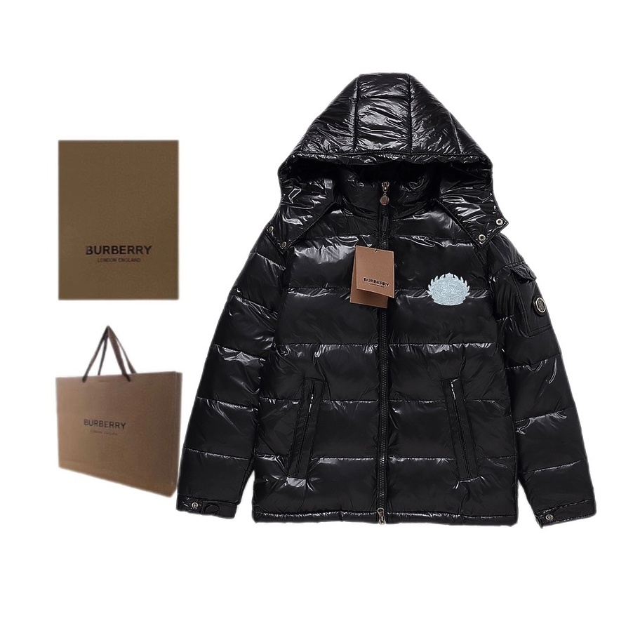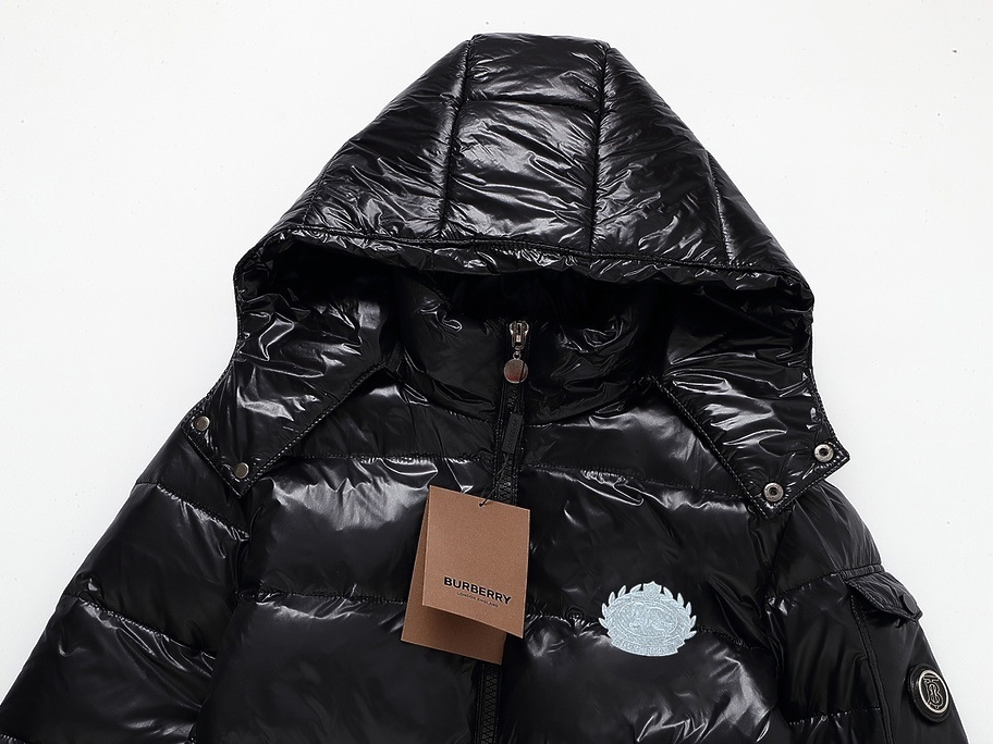 Блестящая черная куртка с капюшоном на кнопках Burberry