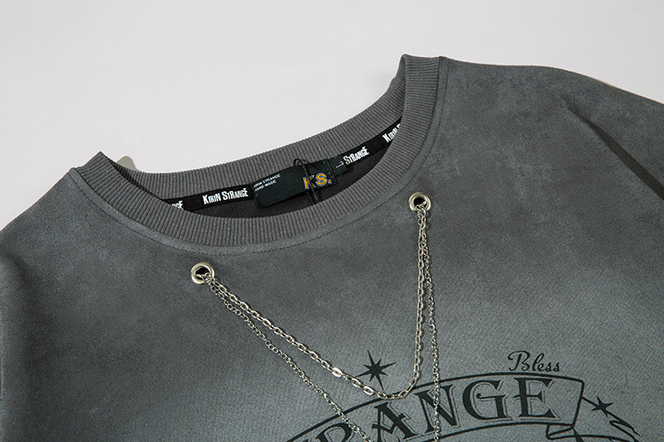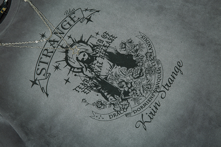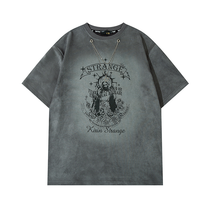 Брендовая серая футболка KIRIN STRANGE с цепью и рисунком