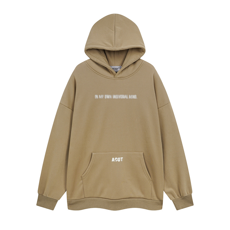 Брендовое ACQT цвета капучино худи с большим рисунком на спине