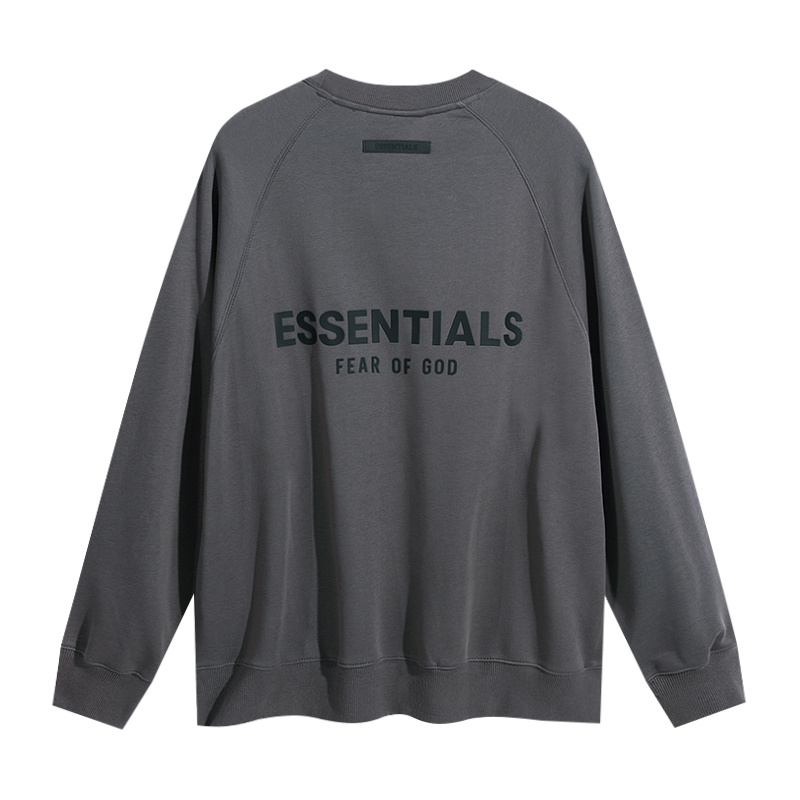 Брендовый свитшот ESSENTIALS FOG серого цвета с округлым вырезом