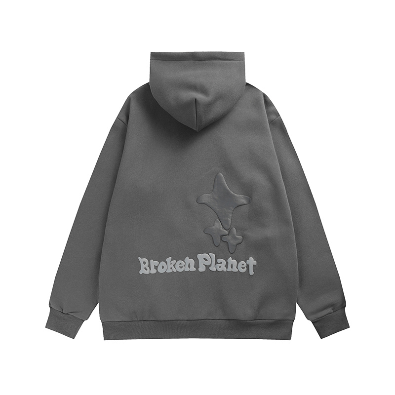 Broken Planet темно-серое худи с принтом "Черный череп"