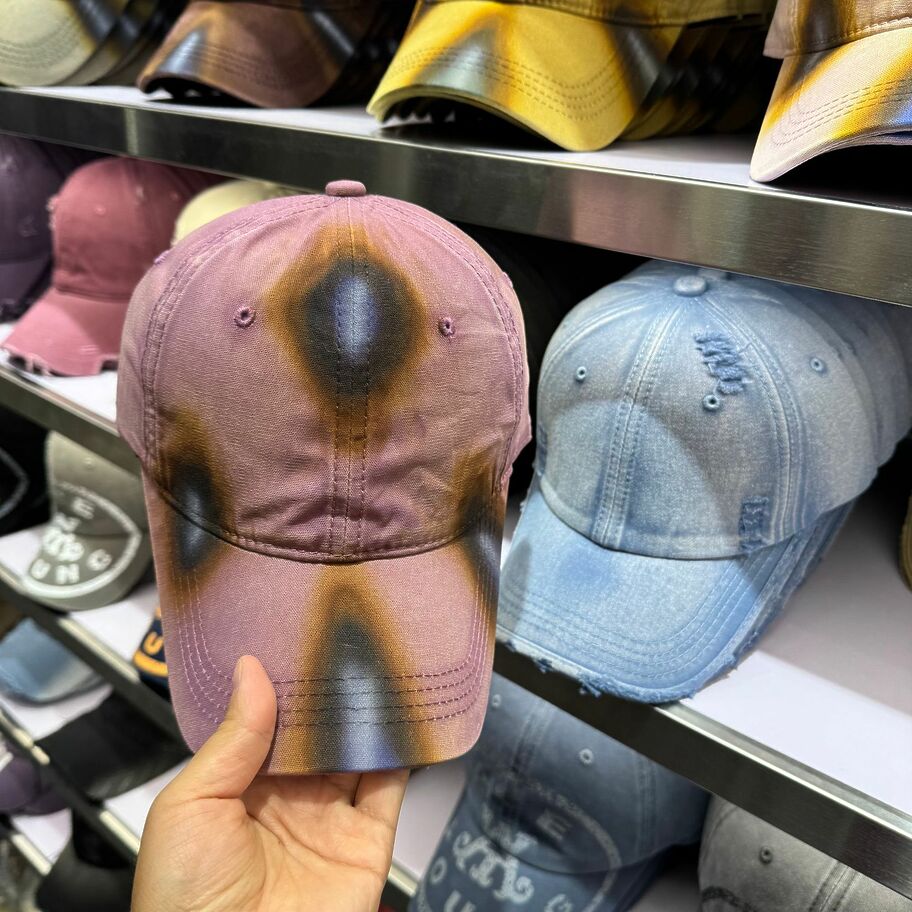 Темно-розового цвета кепка с пятнами из хлопкового материала