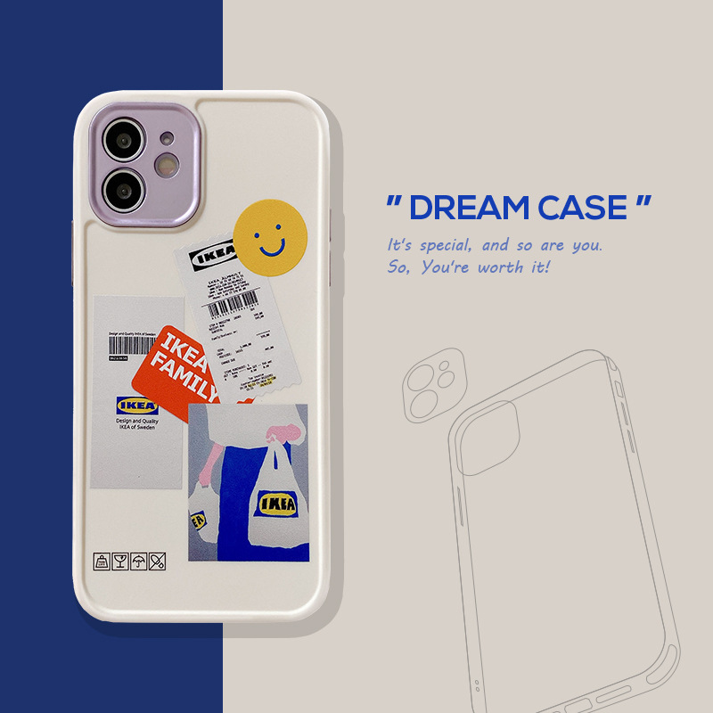 Защитный чехол для телефонов iPhone белый с надписью IKEA и смайликом