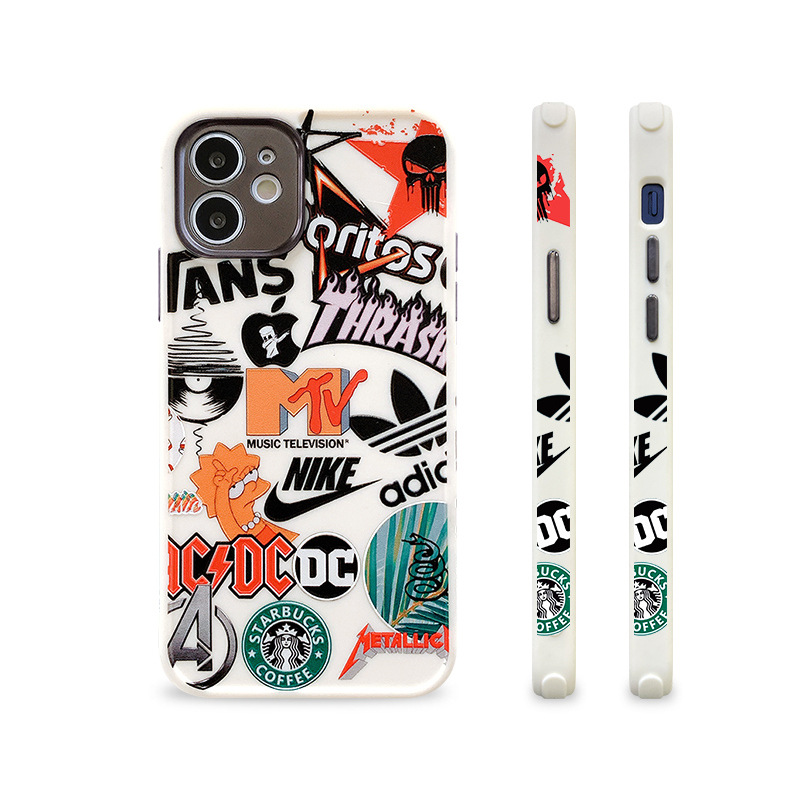 Стильный белый чехол для телефонов iPhone с принтом различных лого