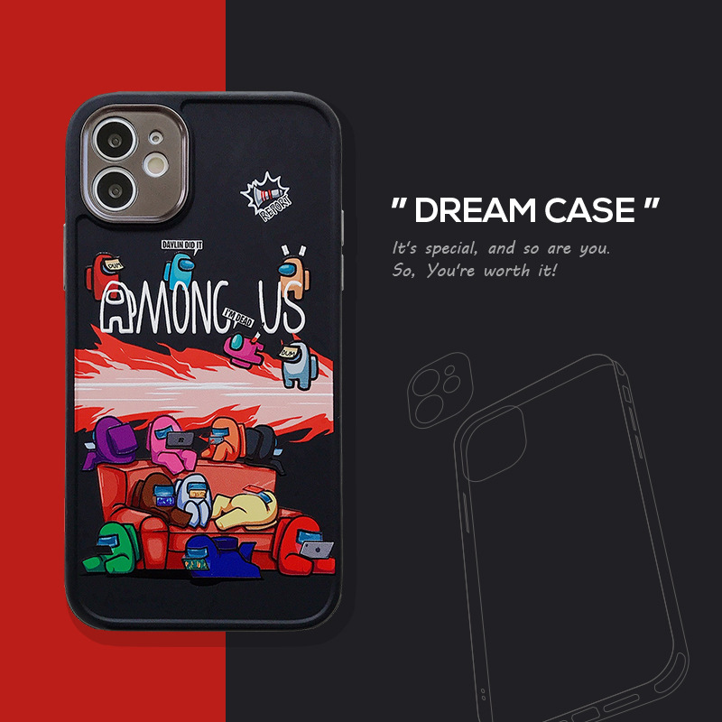 Черный чехол для телефонов iPhone с ярким принтом в стиле Among Us