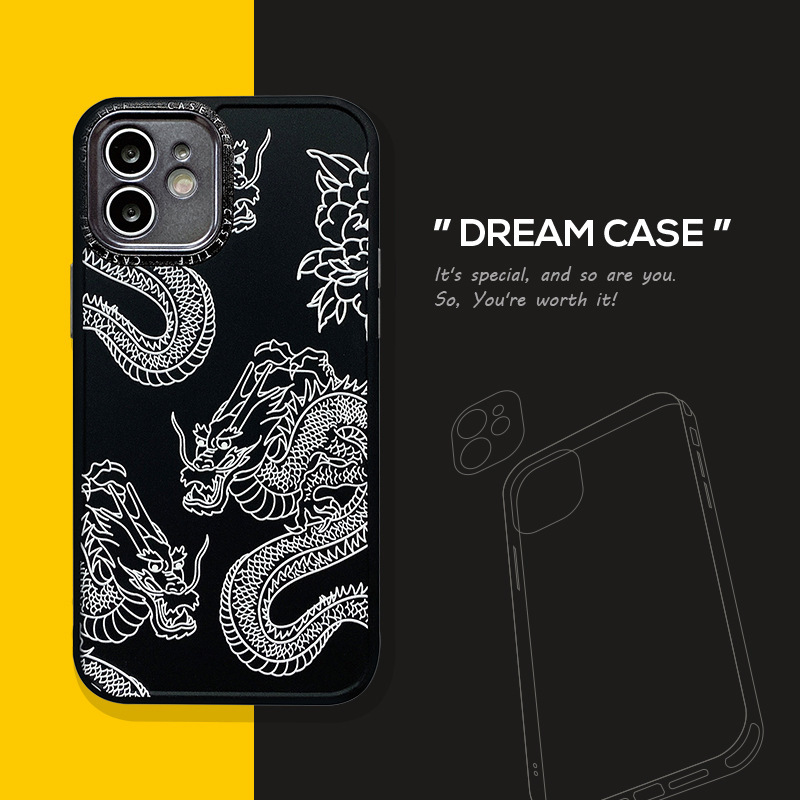 Чехол для телефонов iPhone черный с китайскими белыми драконами