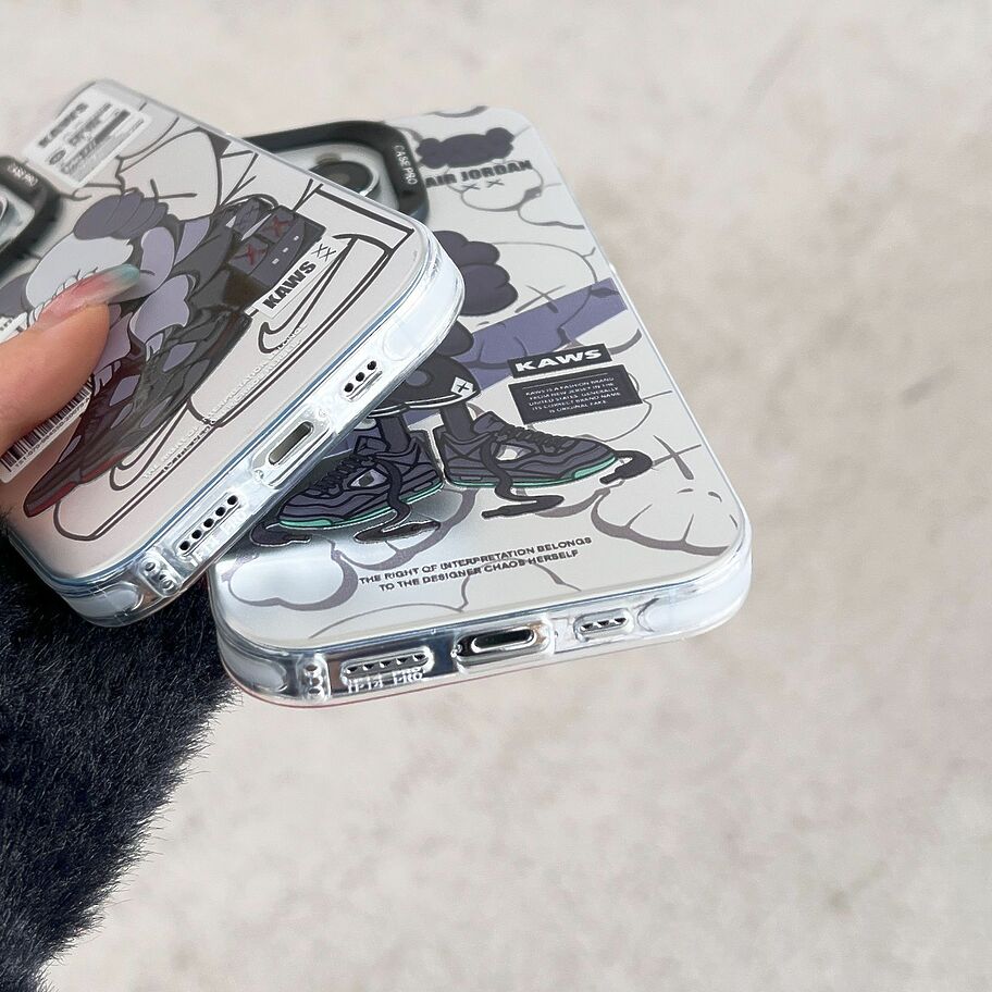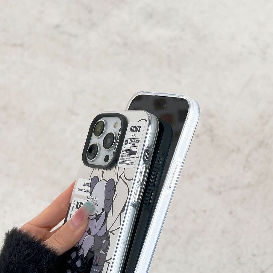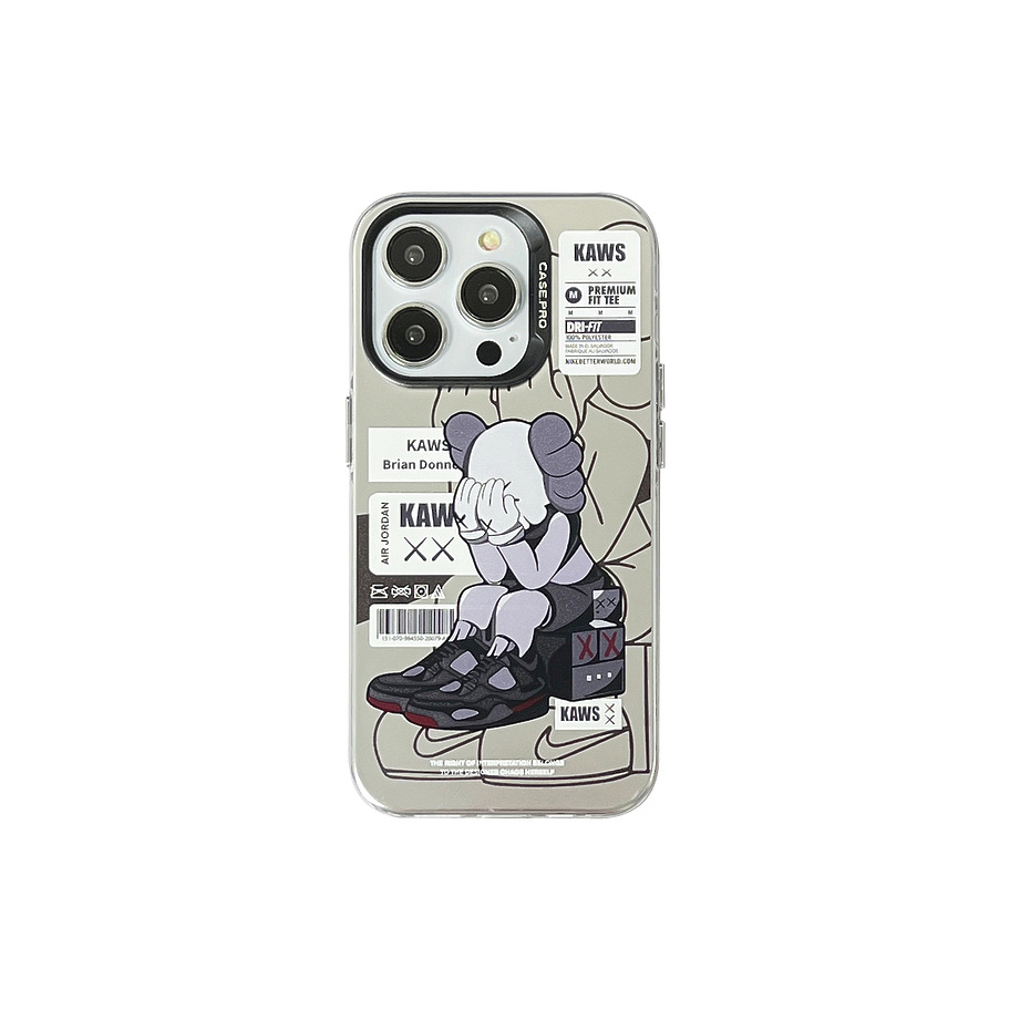 Серый чехол для телефонов iPhone от KAWS с рисунком сидячей куклы