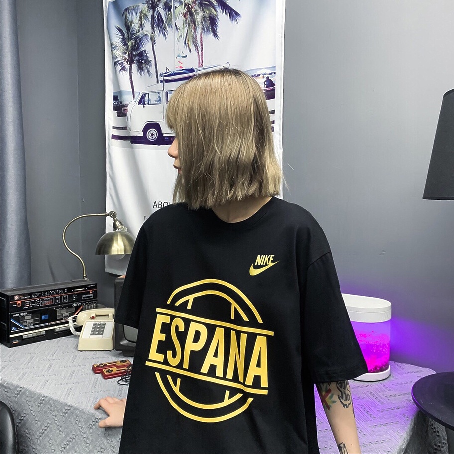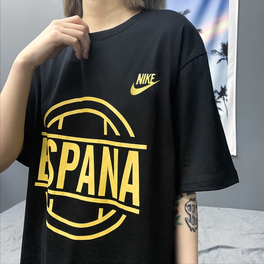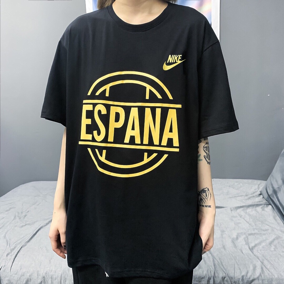 Чёрная 100% хлопковая футболка Nike с жёлтой надписью "Espana"