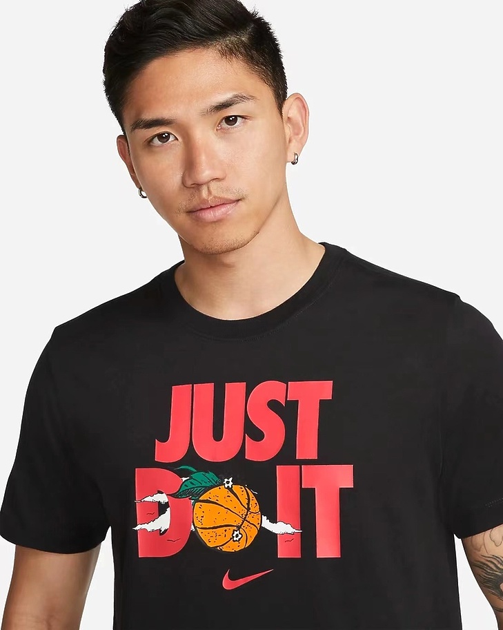 Чёрная 100% нейлоновая футболка от бренда Nike с коротким рукавом