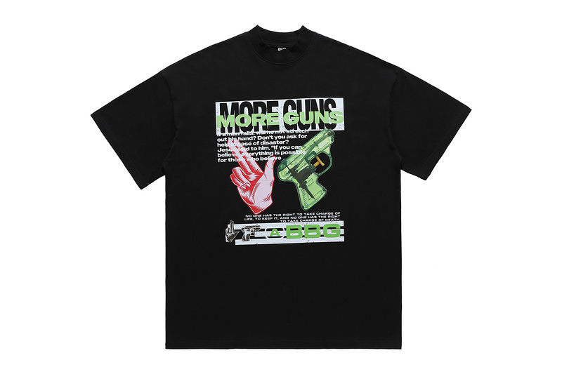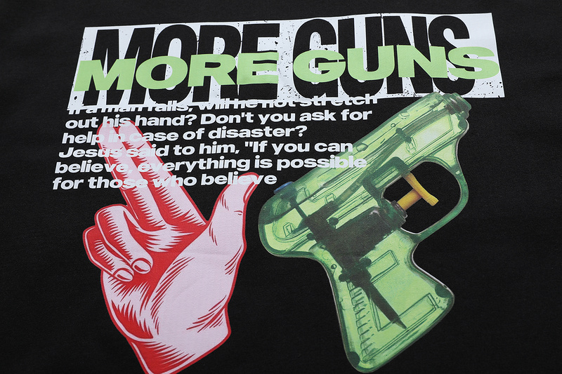 Черная базовая футболка с принтом "MORE GUN'S" на груди