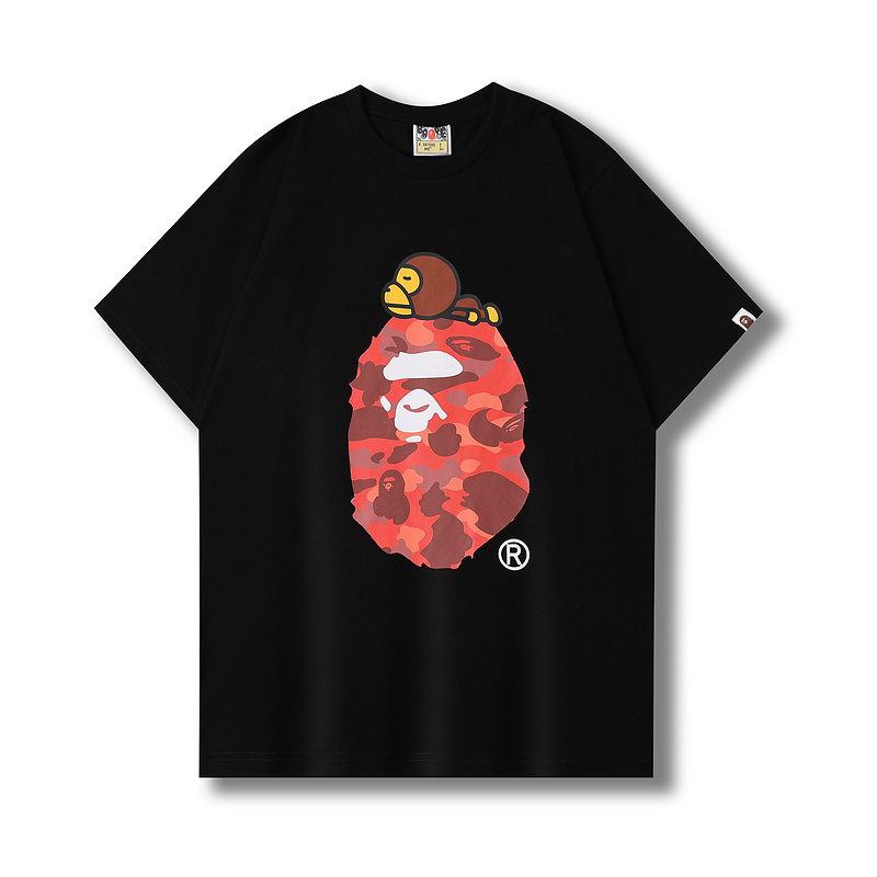 Чёрная футболка Bape Shark WGM с красным фирменным принтом BAPE