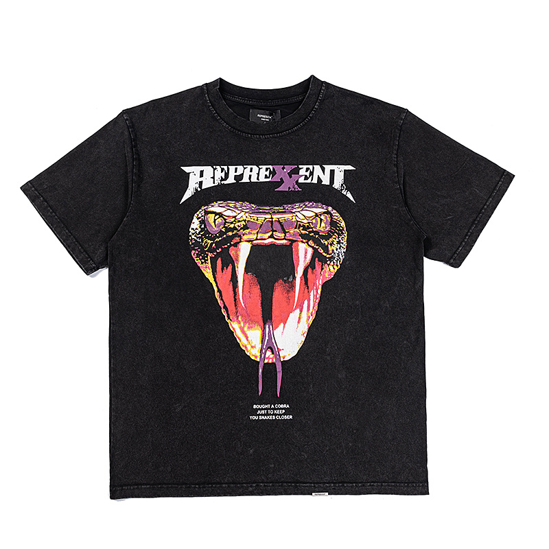 Черная футболка бренда Represent с рисунком "голова змеи"
