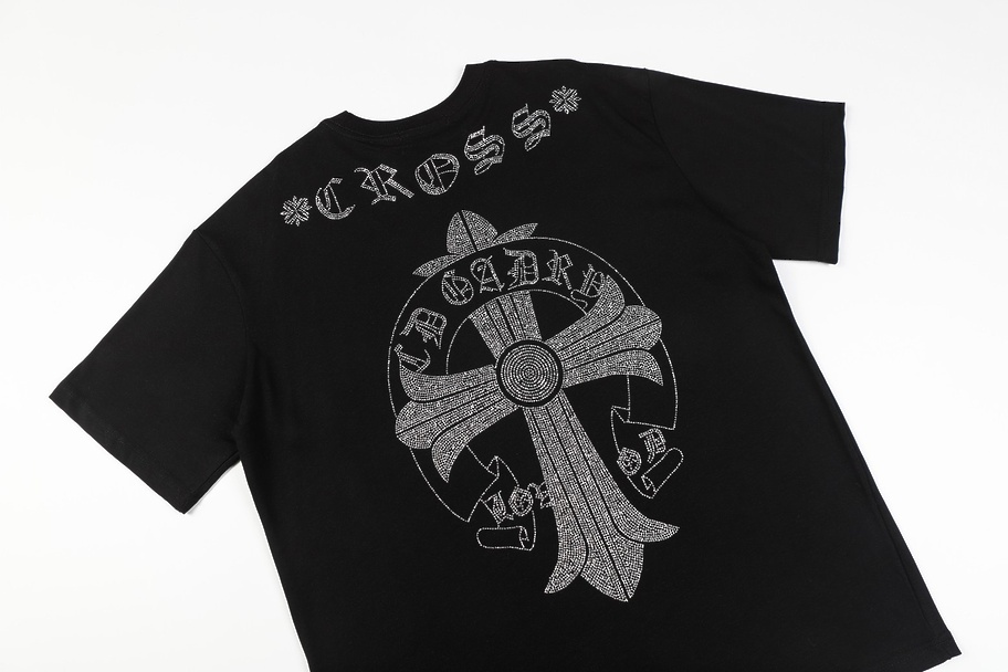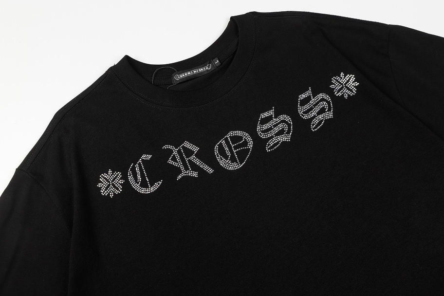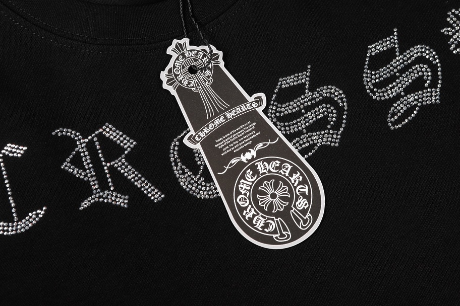 Черная футболка CHROME HEARTS с надписью из страз на груди