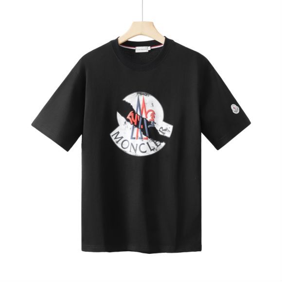 Черная футболка MONCLER с принтом на груди и логотипом на рукаве