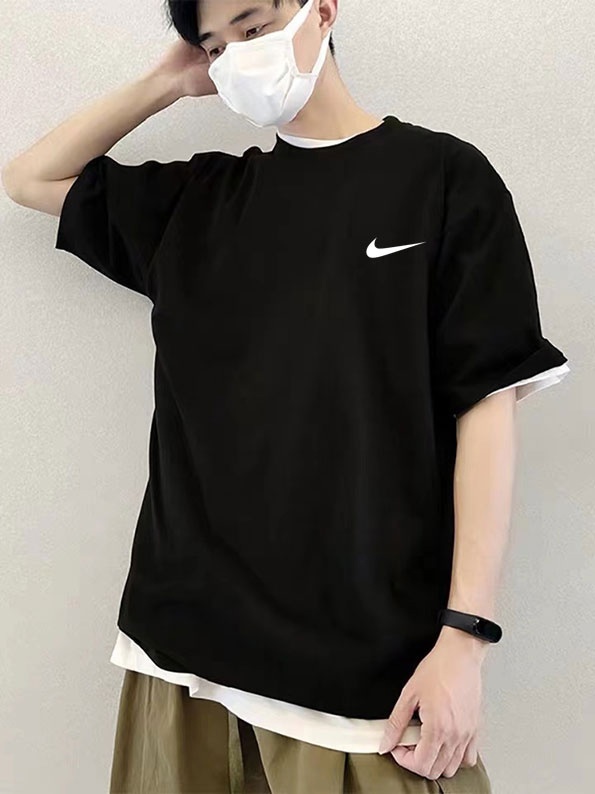 Чёрная футболка Nike Swoosh с лого на груди оверсайз