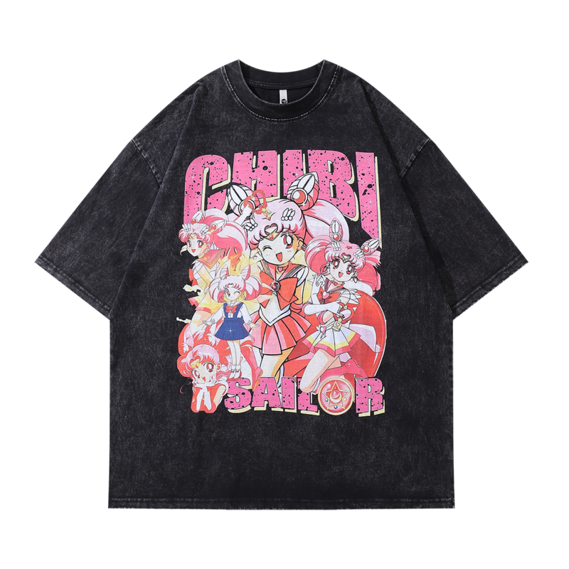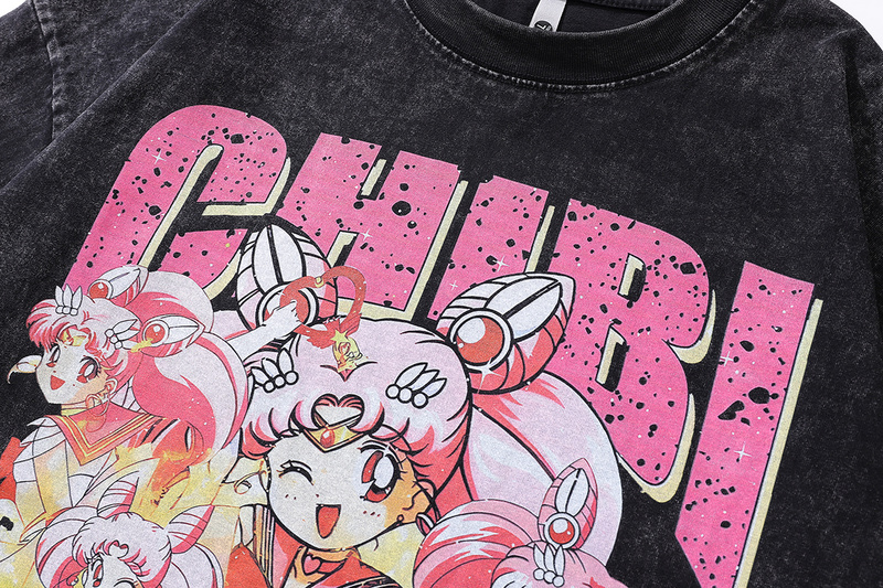 Черная футболка с потертостями и принтом CHIBI от бренда TKPA