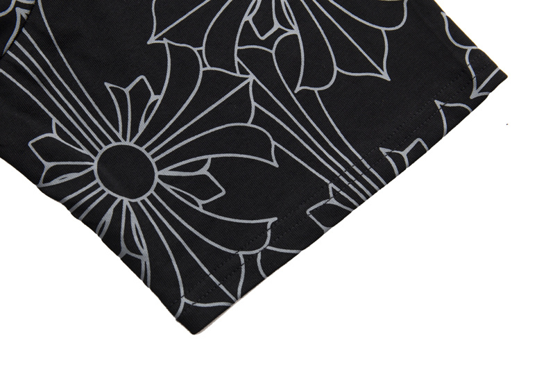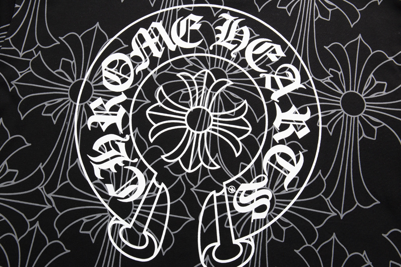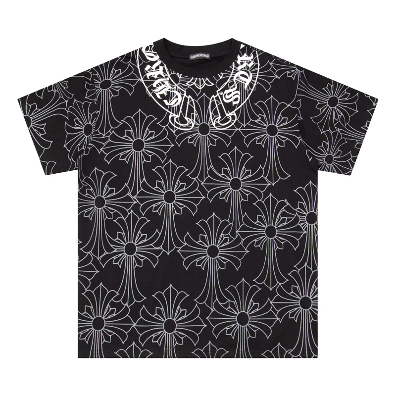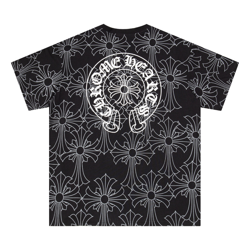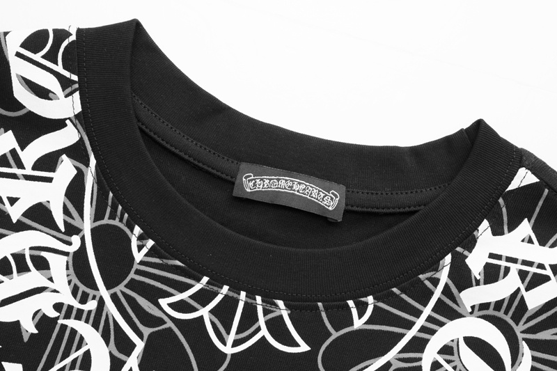 Чёрная футболка с принтом по всей окружности и логотипом Chrome Hearts