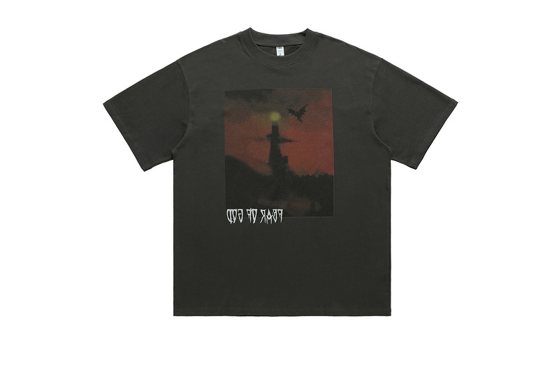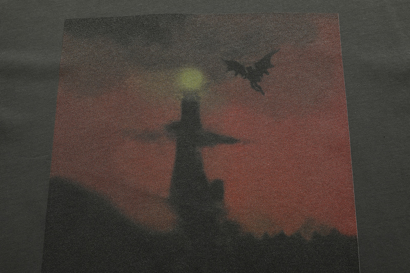 Черная футболка с рисунком "на крыльях ночи" и надписями