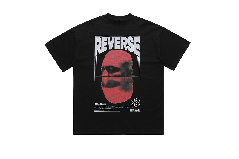 Черная футболка с рисунком "REVERSE зеркальная лысая голова"