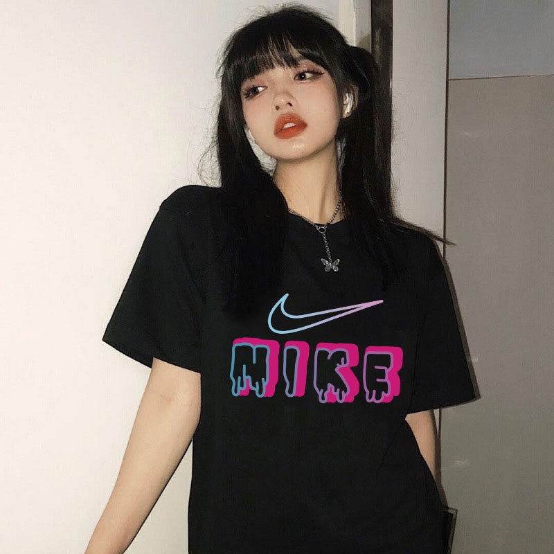 Чёрная футболка с розовым логотипом Nike из 100% хлопка