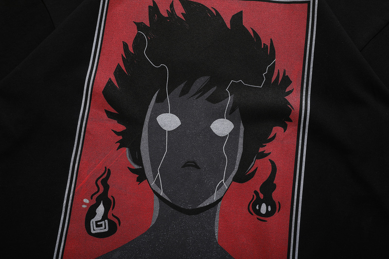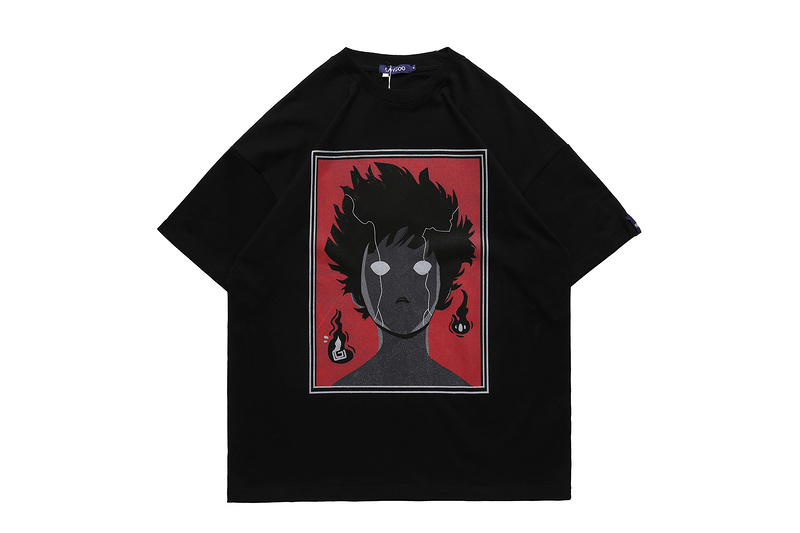 Черная футболка со стильным принтом "голова парня из аниме"