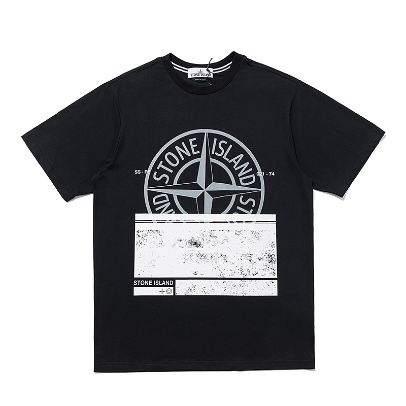 Чёрная хлопковая футболка Stone Island с короткими рукавами
