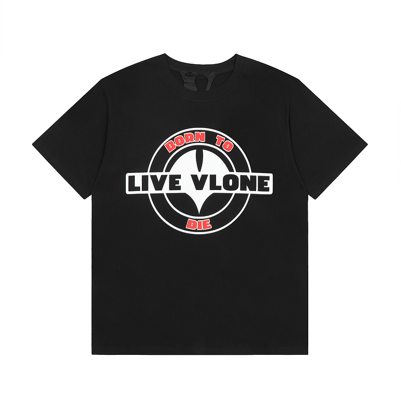 Черная модная футболка VLONE с коротким рукавом прямого кроя
