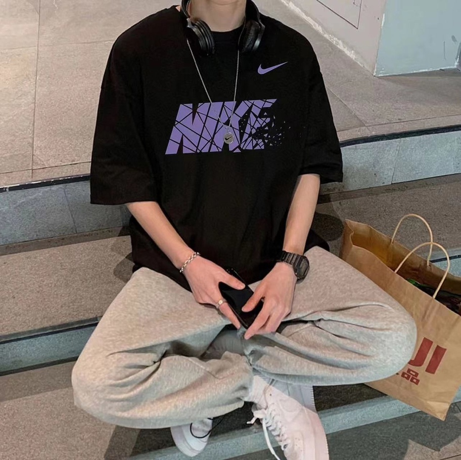 Чёрная Nike футболка свободного покроя с удлинённым рукавом