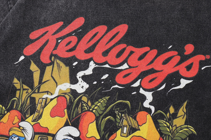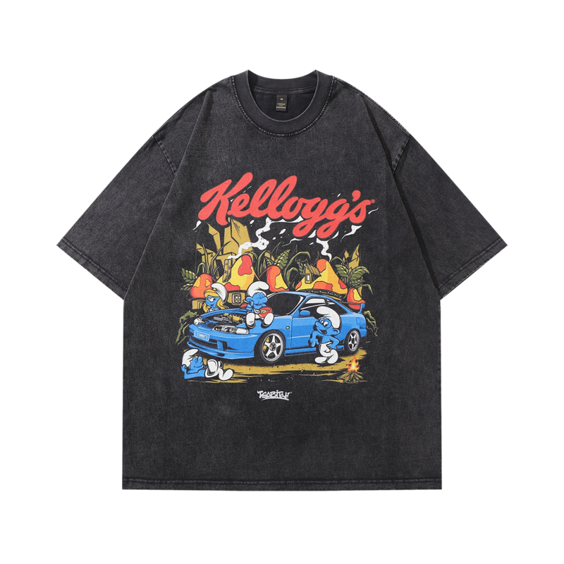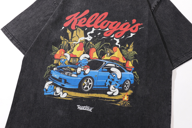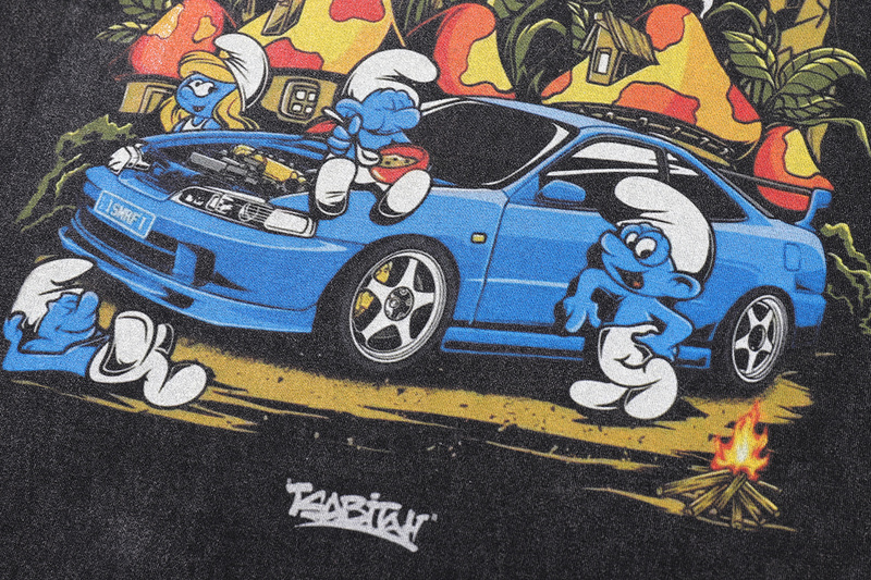 Чёрная оверсайз TKPA футболка с принтом "Смурфики" и коротким рукавом