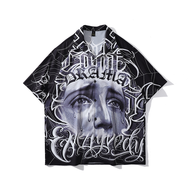 Черная рубашка TKPA с коротким рукавом и принтом плачущих глаз DRAMA