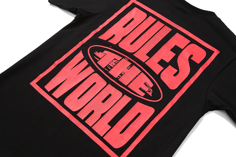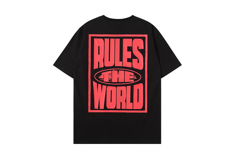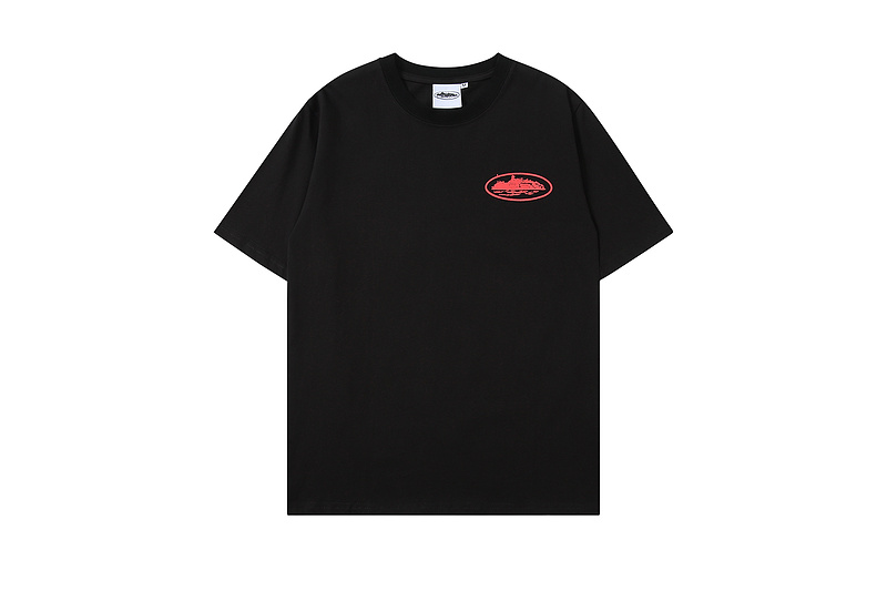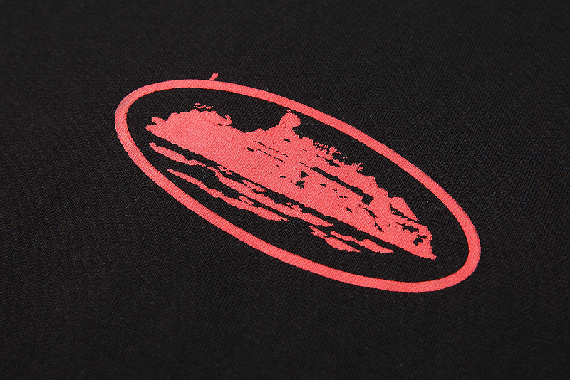 Чёрная с красной надписью на спине и принтом на груди Corteiz футболка