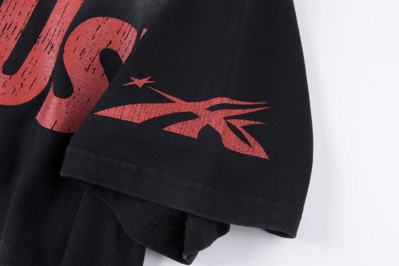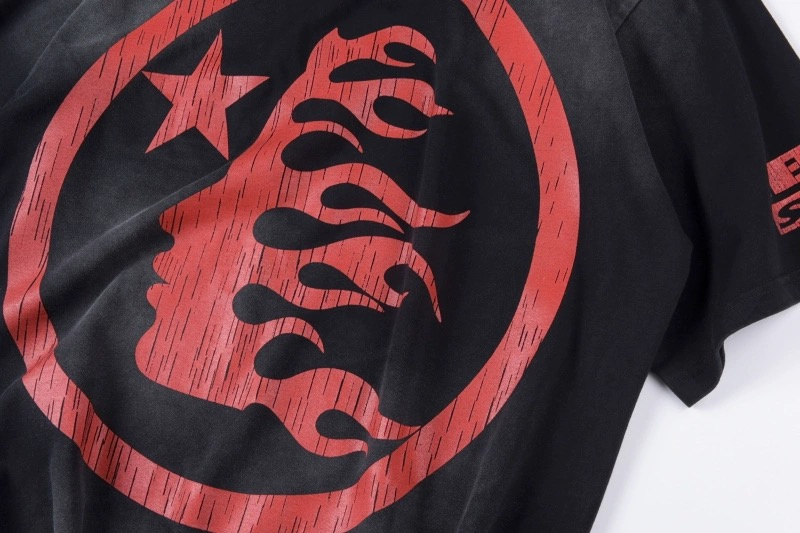 Чёрная с красным принтом и надписями футболка Hellstar повседневная