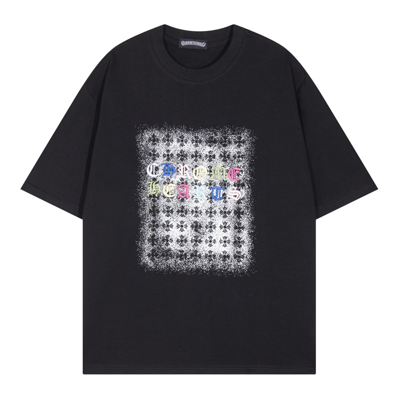 Чёрная с принтом и логотипом на груди Chrome Hearts футболка унисекс