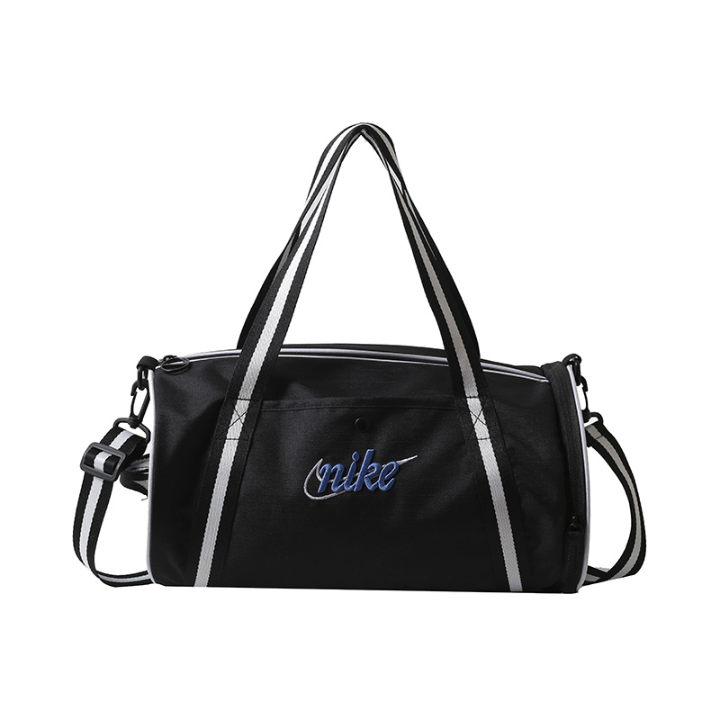 Чёрная спортивная сумка бренда Nike с полосатым ремнём
