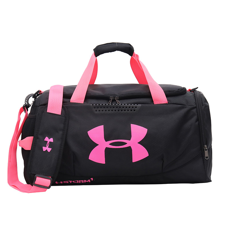 Чёрная спортивная сумка с розовыми ручками от бренда Storm