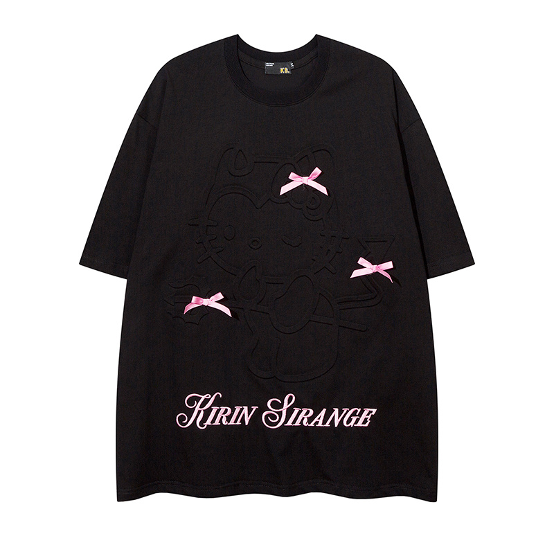 Черная стильная футболка KIRIN STRANGE с выпуклым котиком