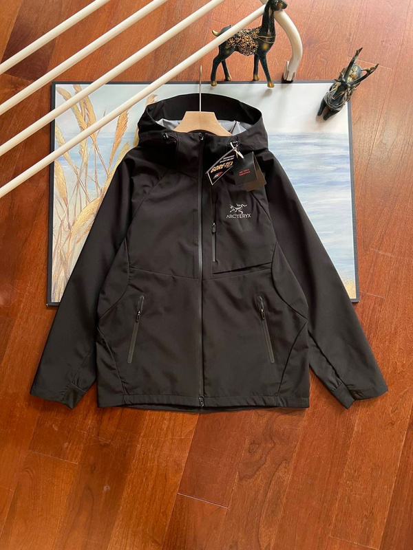 Чёрная стильная ветровка Arcteryx с карманами на молнии