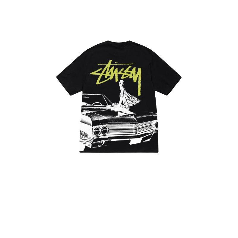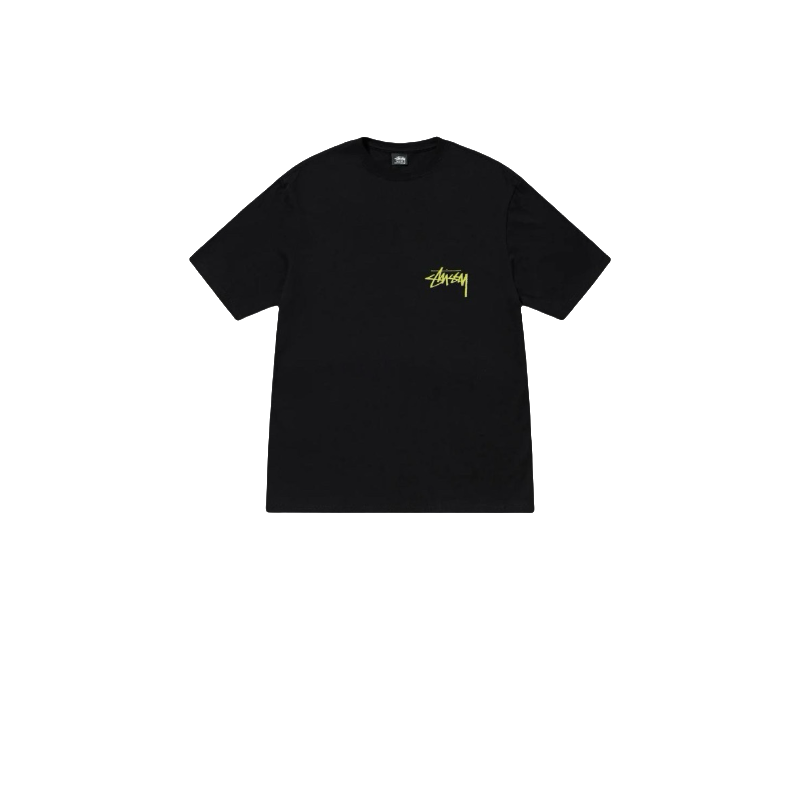 Черная Stussy футболка с принтом на спине из качественного материала