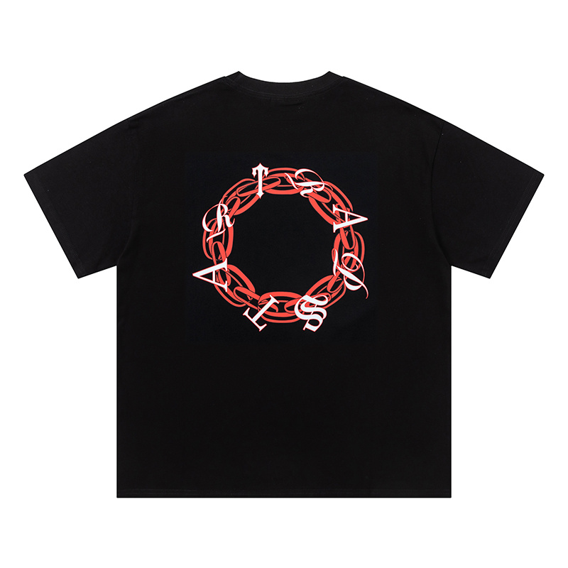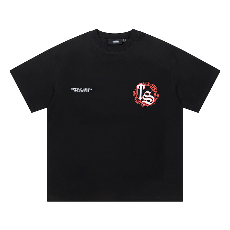 Чёрная Trapstar с красной надписью футболка со спущенным плечом