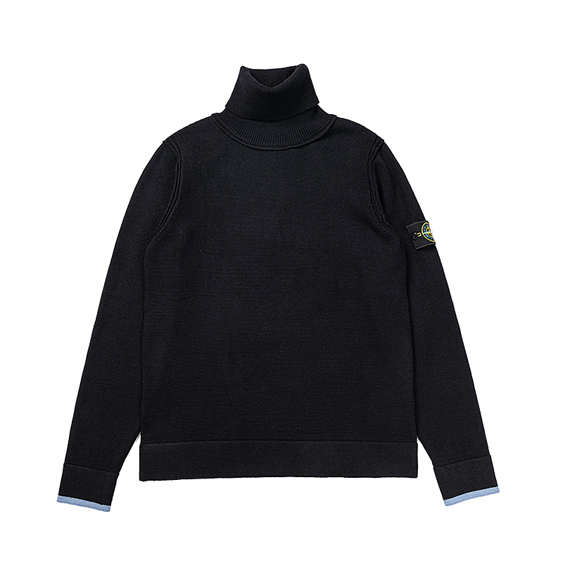 Чёрная водолазка с патчем на рукаве Stone Island и манжетами