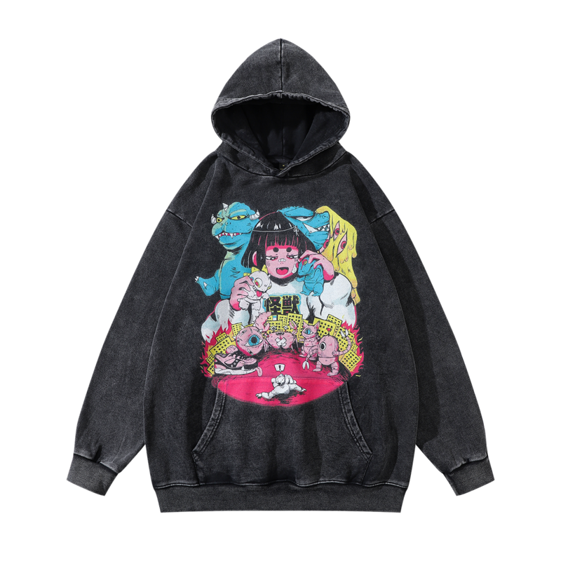Чёрная выстиранная худи от бренда TKPA с капюшоном
