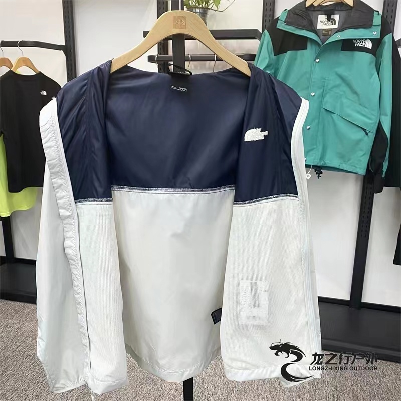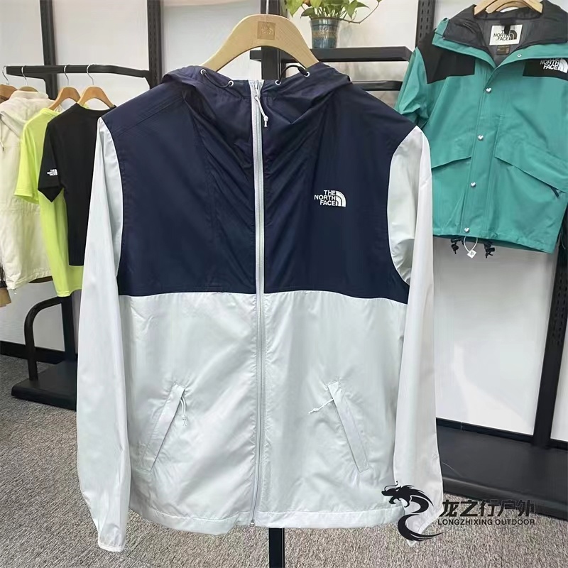 Чёрно-белая ветровка The North Face с капюшоном и завязками