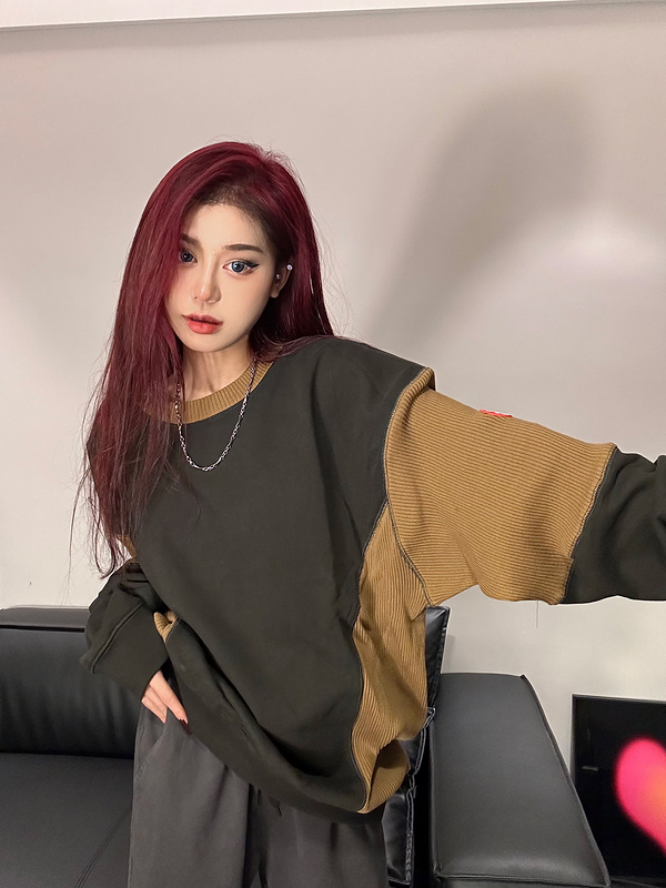 Черно-коричневый свитшот от бренда Cav empt с фирменным патчем