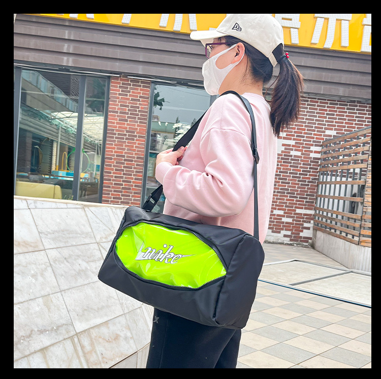 Чёрно-салатовая дорожная сумка от бренда Nike через плечо