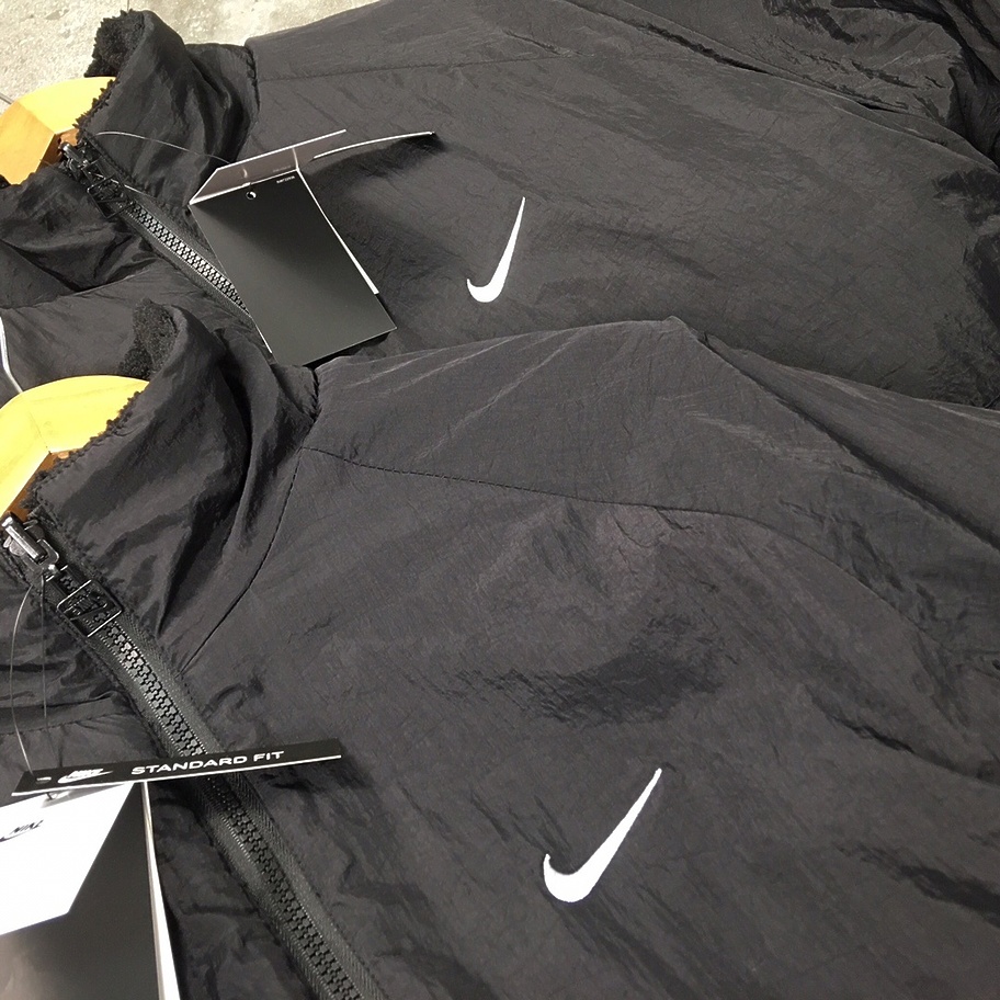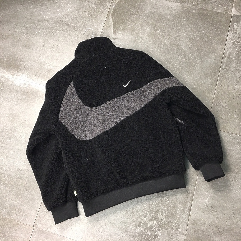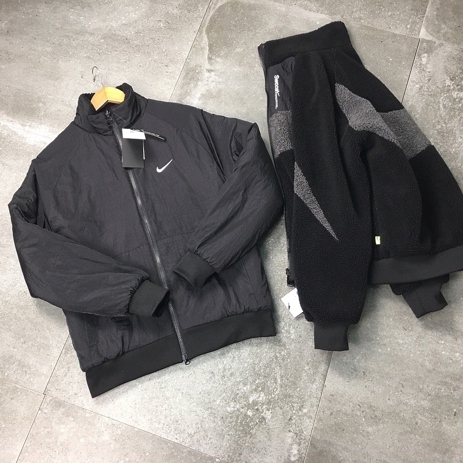 Чёрно-серая ветровка шерпа Nike Swoosh двухсторонняя